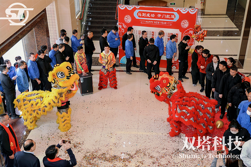 儀式現(xiàn)場,舞獅表演無疑是最大的亮點(diǎn)。專業(yè)團(tuán)隊(duì)的精湛技藝,將瑞獅的靈動(dòng)與威武展現(xiàn)得淋漓盡致。尤其是瑞獅登高采青的瞬間,引得全場掌聲雷動(dòng),象征著 雙塔人勇于攀登、敢于超越的奮斗精神。激昂的鼓點(diǎn)振奮人心,靈動(dòng)的雄獅福滿乾坤,為公司新一年的發(fā)展注入了磅礴的文化力量。